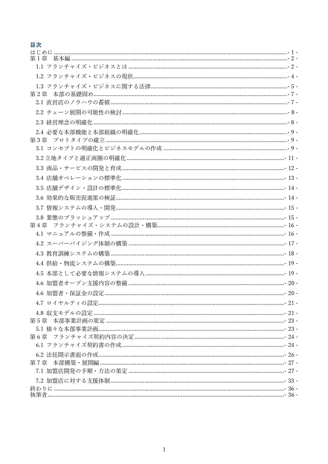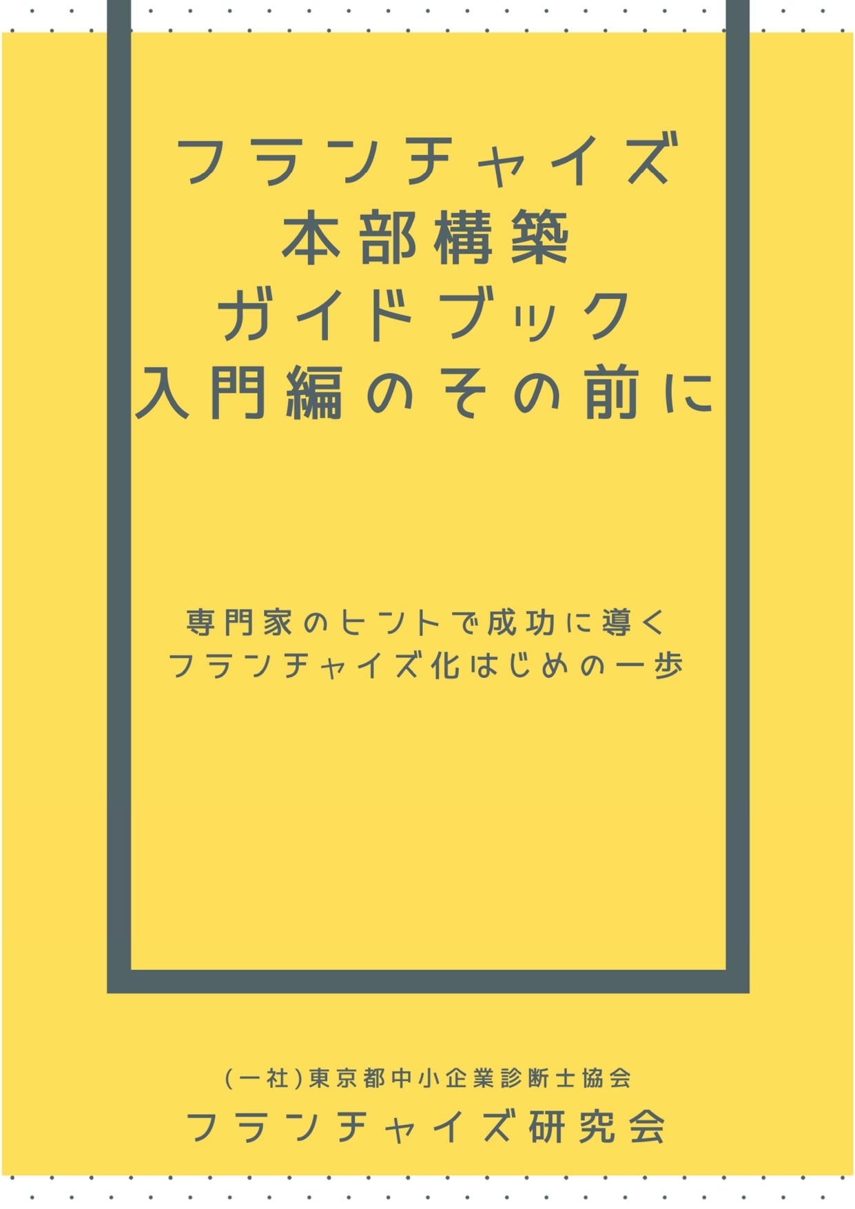 フランチャイズ本部を立ち上げたい事業者向けのガイドブックです。入門編のその前に、ということで、最初にどこから手を付ければ良いのか迷っている方は是非ご覧になってください。フランチャイズ本部を構築するためには、単に収益の高い店舗があるだけでは不十分です。本部理念・マニュアル・スーパーバイザー・教育システム・契約書・収支モデルなど、新たに本部を構築するために必要な項目を一通り網羅したガイドブックとなっています。